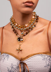 Collar Kiara Cruz Dorada Piedra Natural