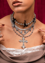クールなブラックのリボンが特徴的なy2kをイメージしたアイテム。このユニークなアクセサリーは、モダンな洗練とゴシックな魅力をシームレスに融合させています。
